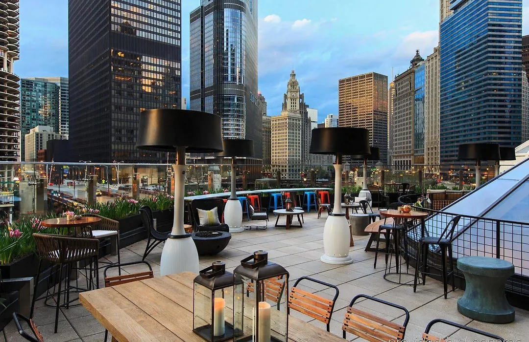 The LondonHouse Chicago is an iconic luxury hotel located at the intersection of the Chicago River and State Street. This Marriott in Chicago offers a stunning rooftop bar with breathtaking views of the city skyline and the Chicago River, ideal for unwinding with a cocktail. Guest rooms are elegantly decorated, featuring large windows that frame the city's spectacular landscape. With a modern fitness center and a full-service spa, this hotel caters to both relaxation and rejuvenation needs. The LondonHouse also boasts fine dining options, perfect for indulging in gourmet cuisine. Overall, it exemplifies a harmonious blend of sumptuous comfort and chic urban style.